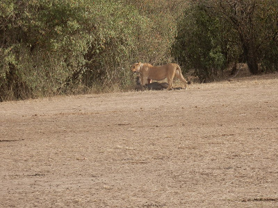 Only yards from the bank, a sight caught someone’s eye. A crouching lioness.