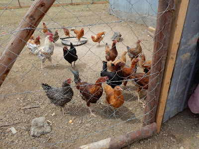 Finally we made it to the school, Southern Cross Academy. I will write about that another time, but for more now I will tell you that I was pleased to see that they are already raising chickens. And that they got to have fresh air and sunshine. And a chicken’s favorite thing – ground to scratch on.