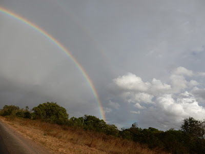 Several hours after leaving the center, as we were driving home, it started to rain. We looked back and wondered if it could possibly be raining back there as well. A rainbow appeared in the sky. God is good.