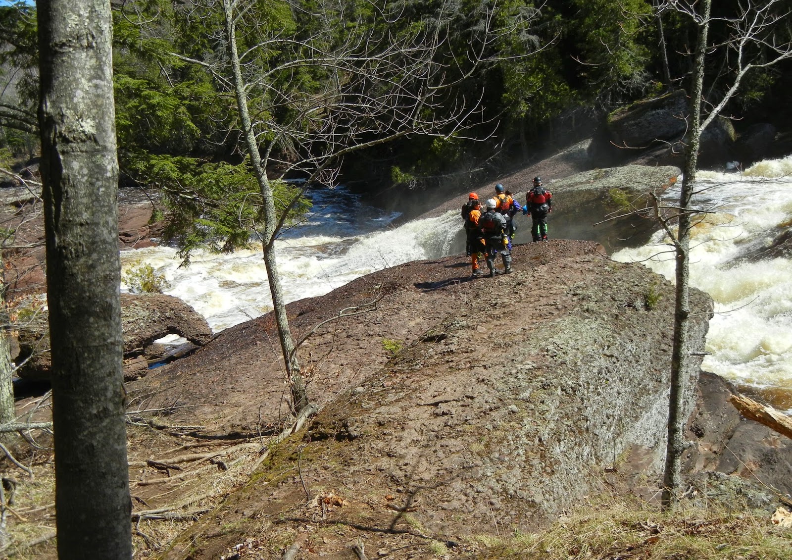 Hubby talked to two of the guys for quite a while. They only kayak this river once a year, when the water is at its highest. Otherwise they hit bottom. Three of them were planning on taking the next falls. When Hubby told me that, I freaked out. I had been to Rainbow Falls several times. It is tall and steep and scary any time of year.