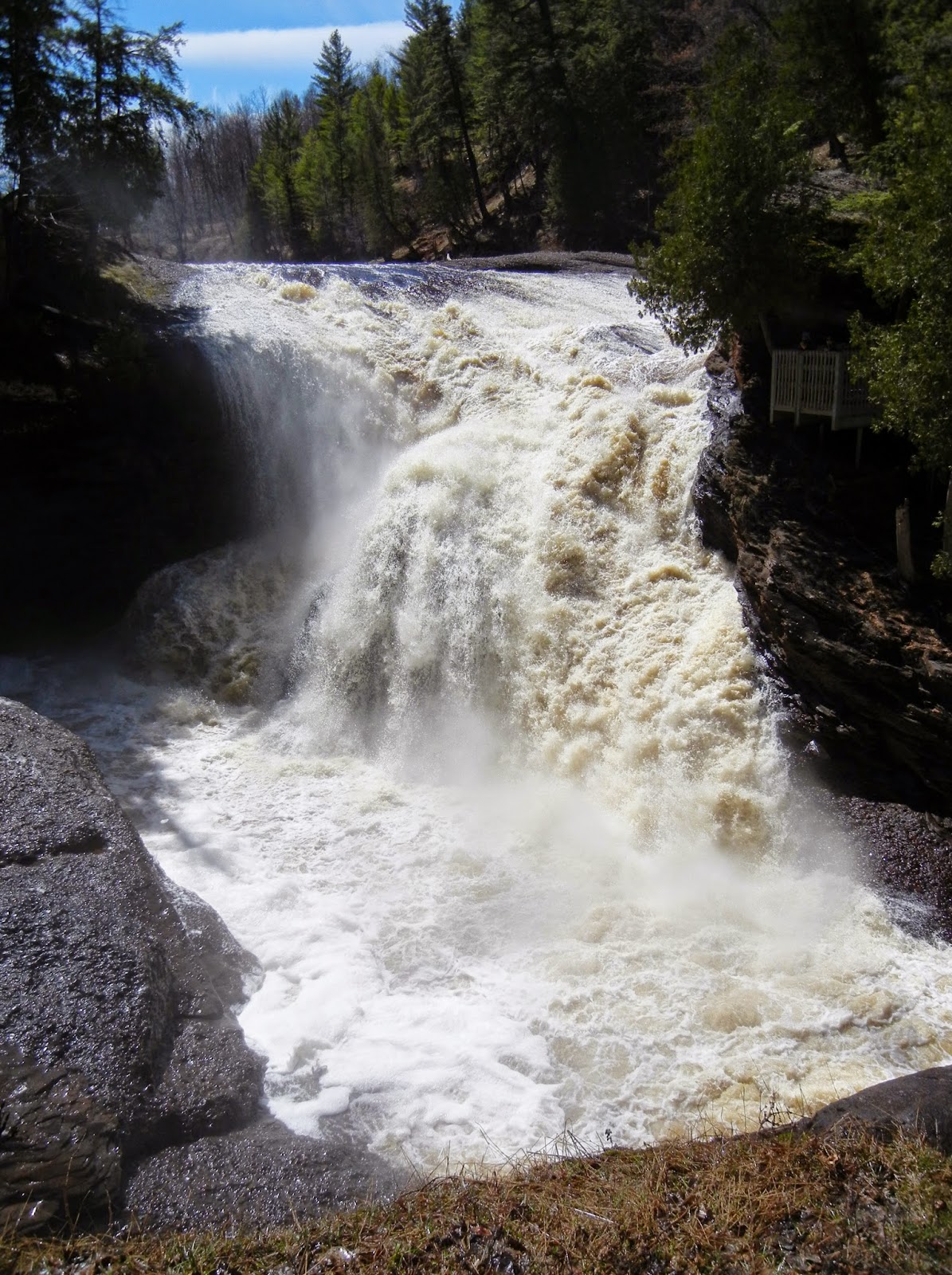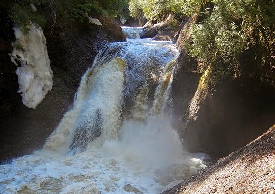 This past Saturday, the hubby, Dino the wonder dog and I took a ride to Black River Harbor in Michigan’s Upper Peninsula. I have been there many times and continue to be awed by the beauty of the river and its many waterfalls. I’ve been there in different seasons, when the water was at different levels and even when it was frozen. (I will have to scan those pictures someday and share them too.)