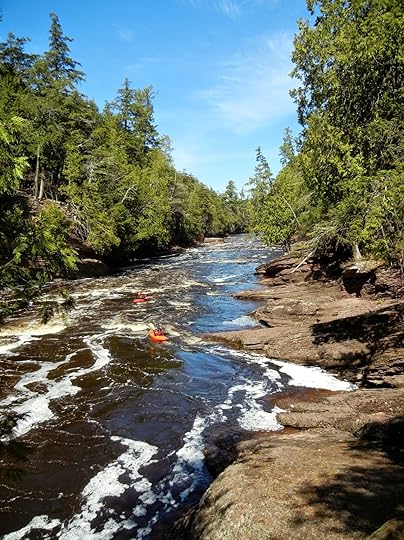My husband and I took a ride up north yesterday. We’ve always been in love with Michigan’s Upper Peninsula, and have been to Black River Harbor many times. We have never seen anyone kayaking down the Black River though, at least not over the falls. This is Sandstone Falls, one of the shorter ones. All nine kayakers made it through. I don’t know if my praying was the key or not. All I know is that even though God has my back every minute of every day, you will not catch me participating in this sport.