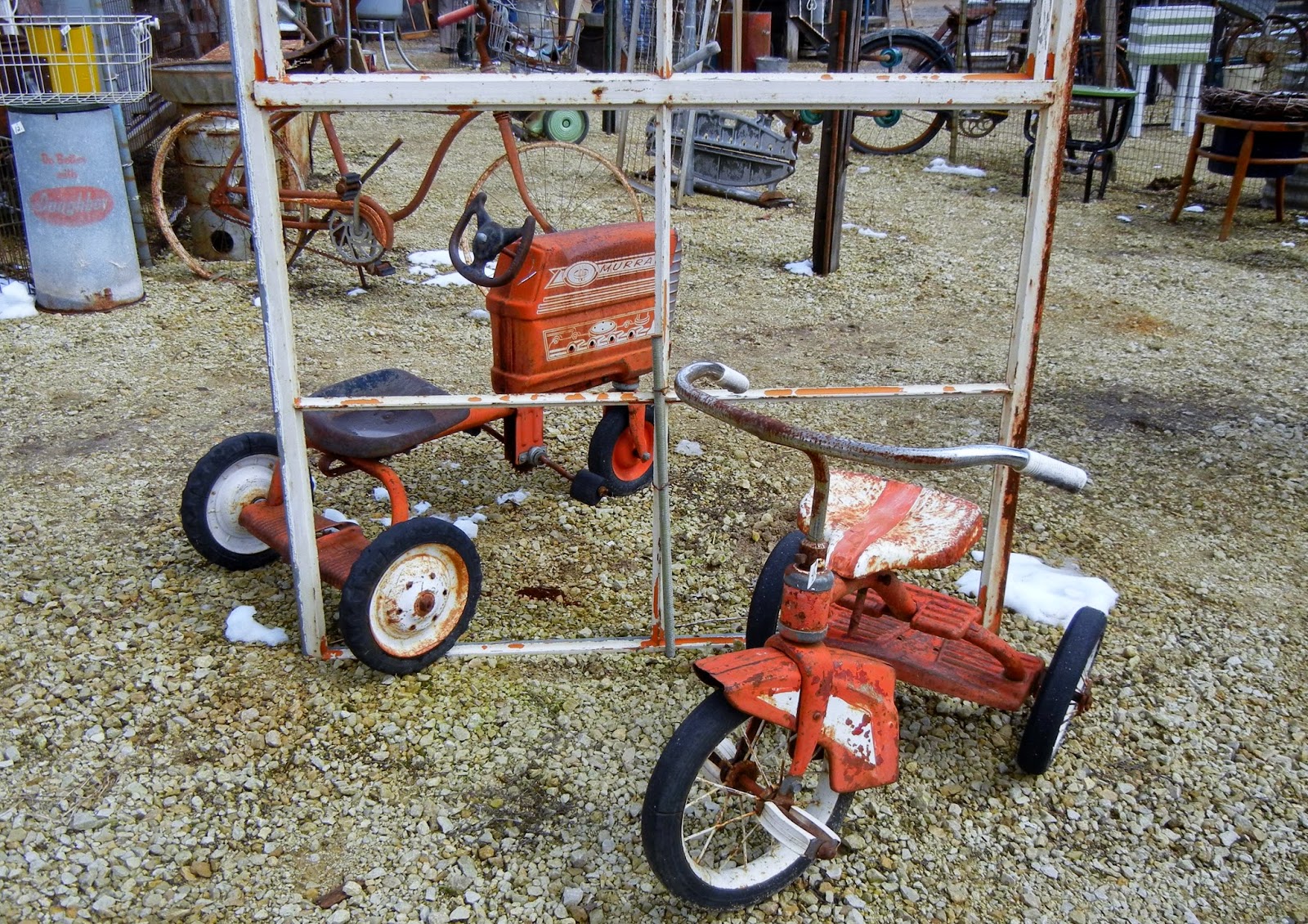I love all the old bikes, especially the one in the tree.