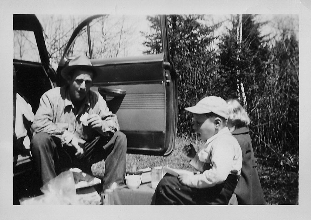 Dad with my brother and sister. The caption on this picture reads: "April 26, 1952, near Ontonagan on Lake Superior, 85 degrees out"