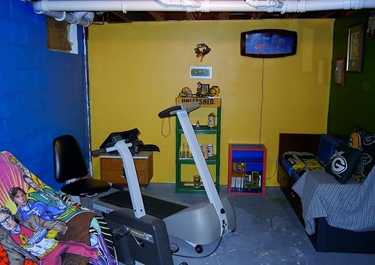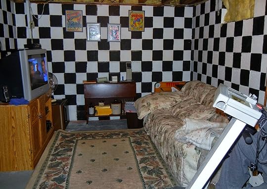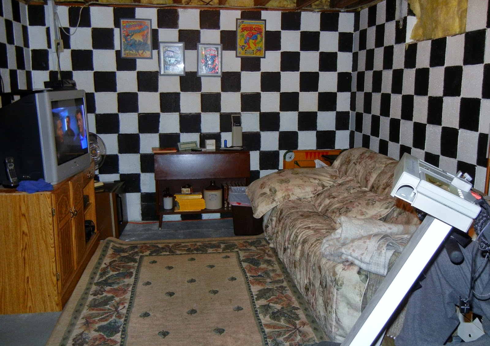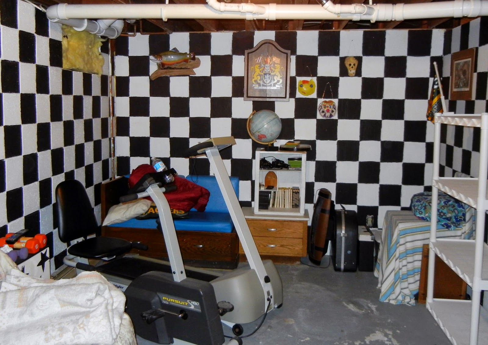 Before the room was painted in black and white checkerboard, it actually was Packer green and yellow. I was too lazy to scan those pictures tonight, but I promise to some day break out the old photo albums and scan all the before, during and after pictures of my house from the last 24 years.