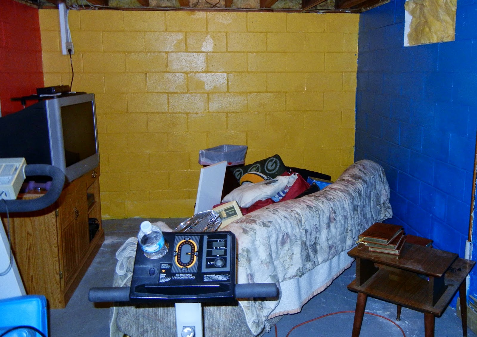 Someday, we will also put a ceiling in this room and hopefully I will be able to talk the hubby into taking the fiberglass insulation out of the windows and let me hang curtains.