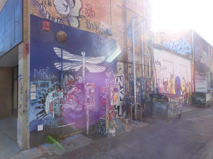 Artists– or probably anybody with a spray can – can put their mark on the brick walls,wooden stairs, and any other surface along this alley between Main Street andSt Joseph Street.