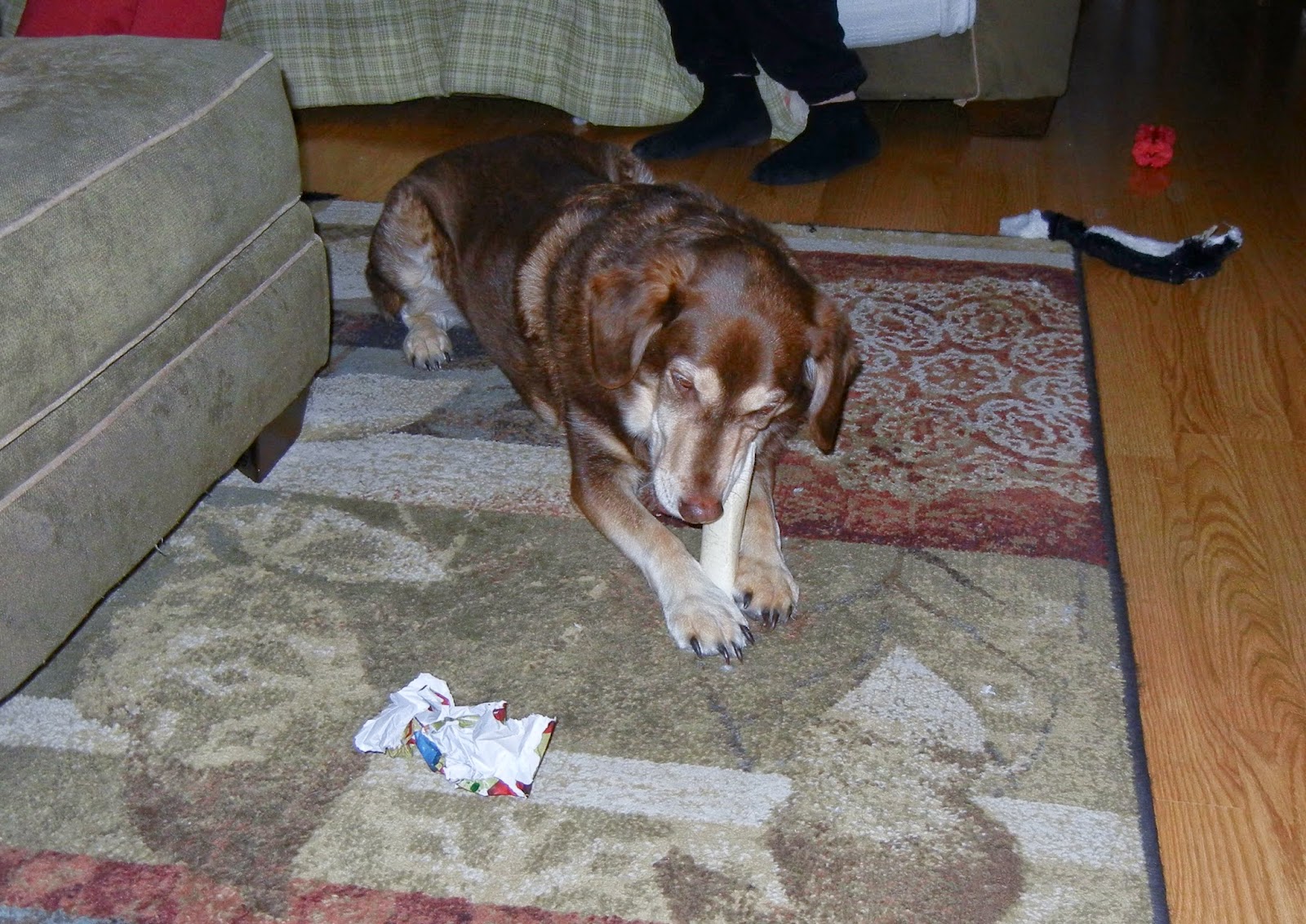 Dino is spoiled too. But all he really wanted for Christmas was to be with his family, but he found this old bone in his toy box and that made him even happier.