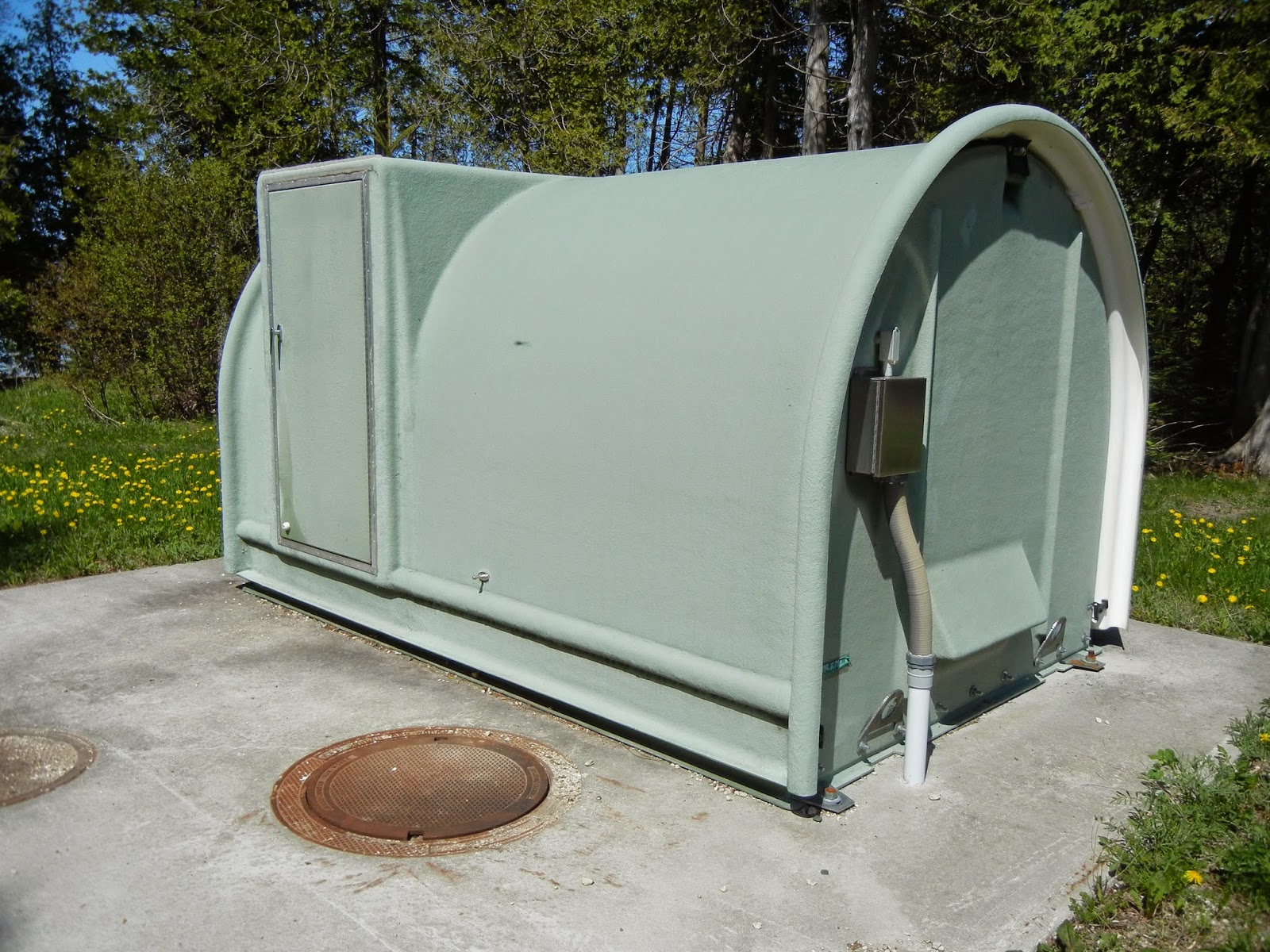 I don't know what this is, some kind of maintenance building for the city water works, I think. Or a place to put prisoners on a hot summer day. This was next to Lake Michigan in Mackinaw City.