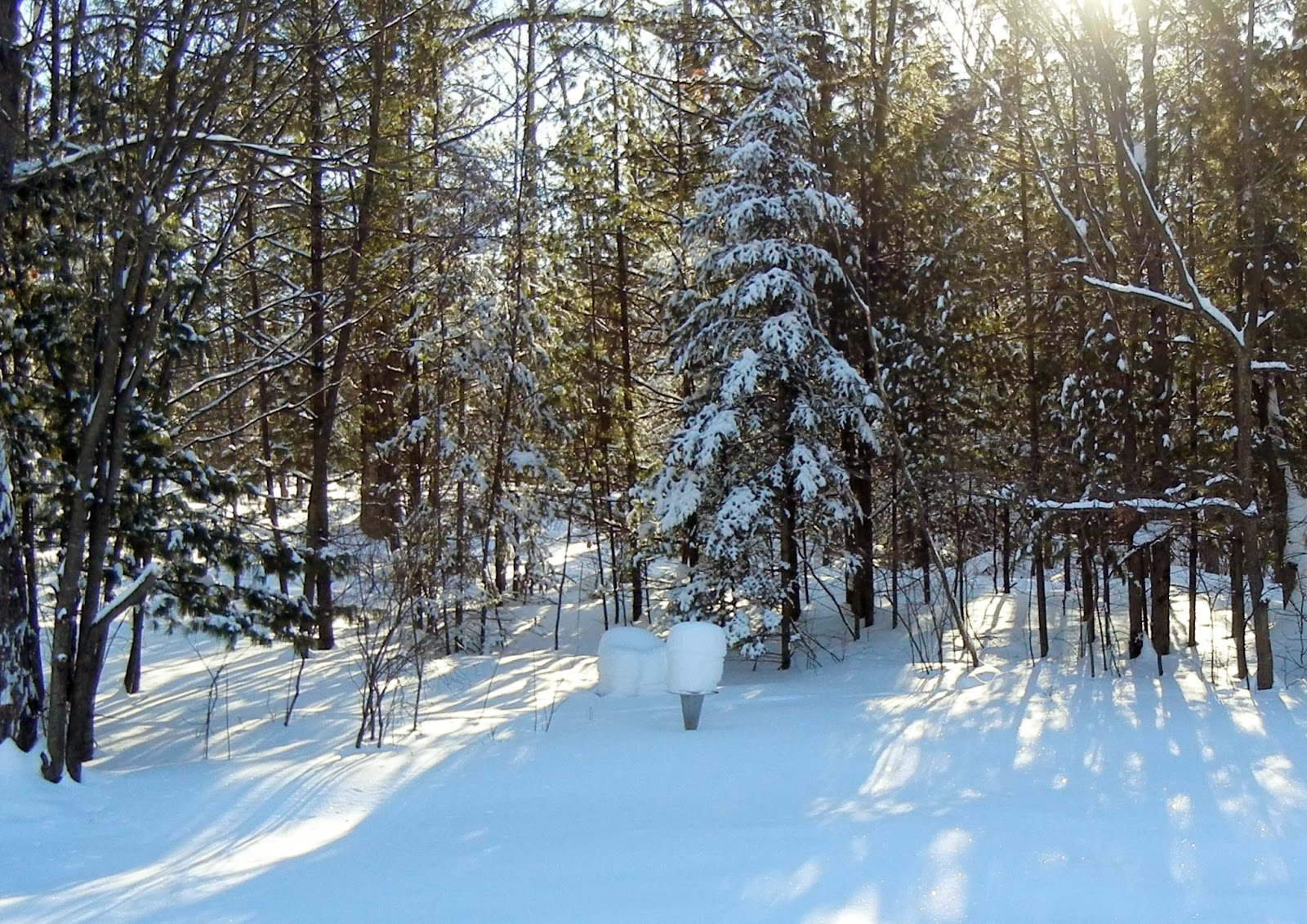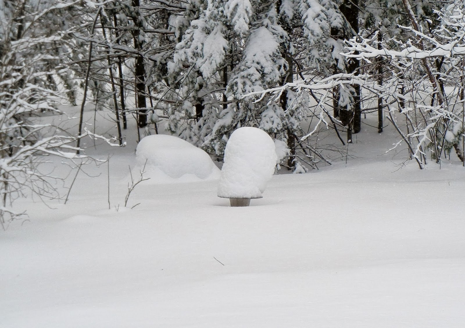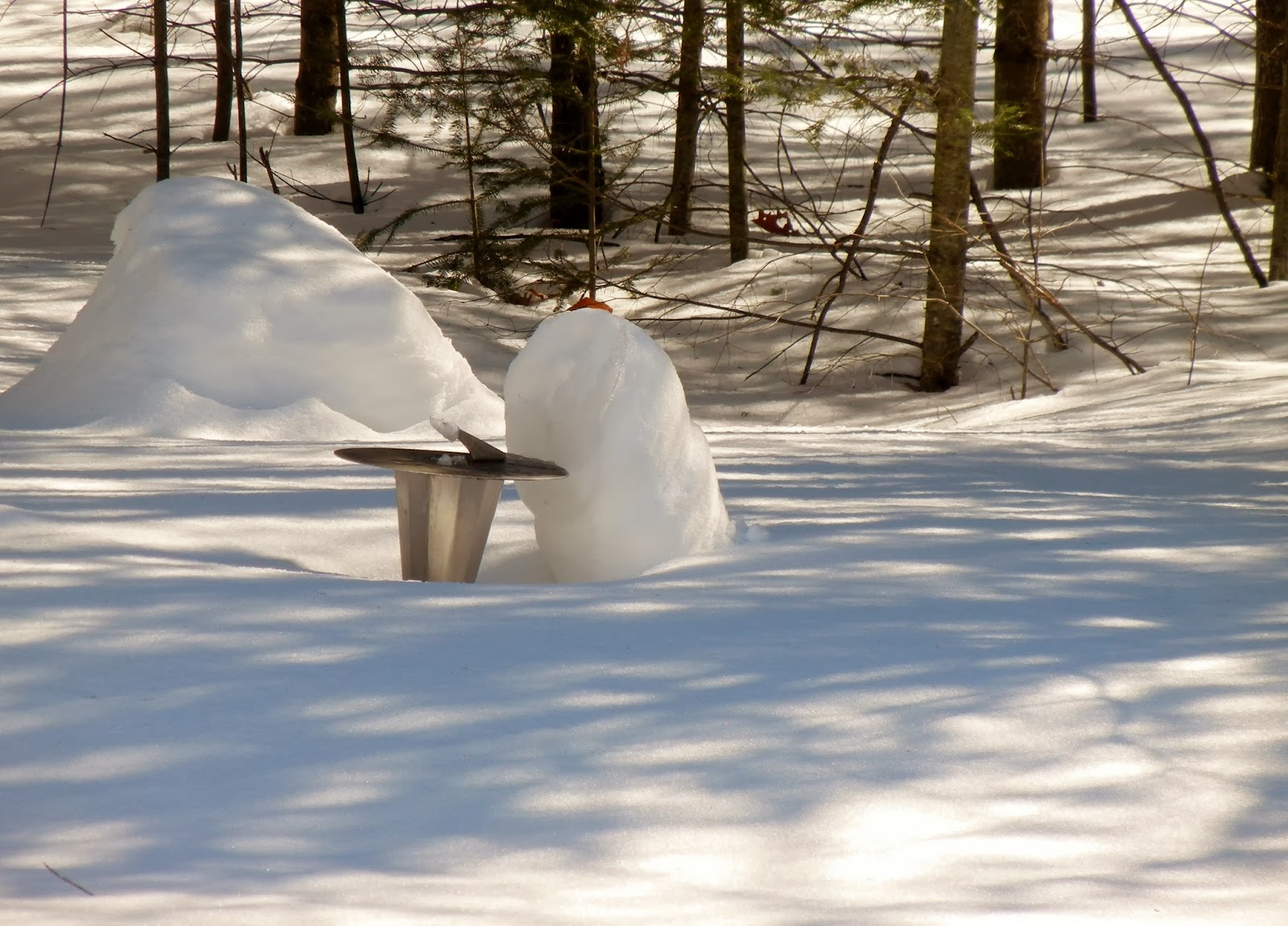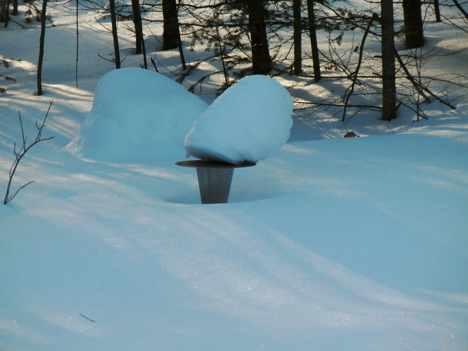 This is the view from my back deck on January 4 of this year. My dad had made that sundial years and years ago. When Mom moved out of her house in 1995, she asked if anyone wanted it and I said "sure". We stuck it amongst the daylillies and other flowers that the previous owner had planted and didn't think more of it.