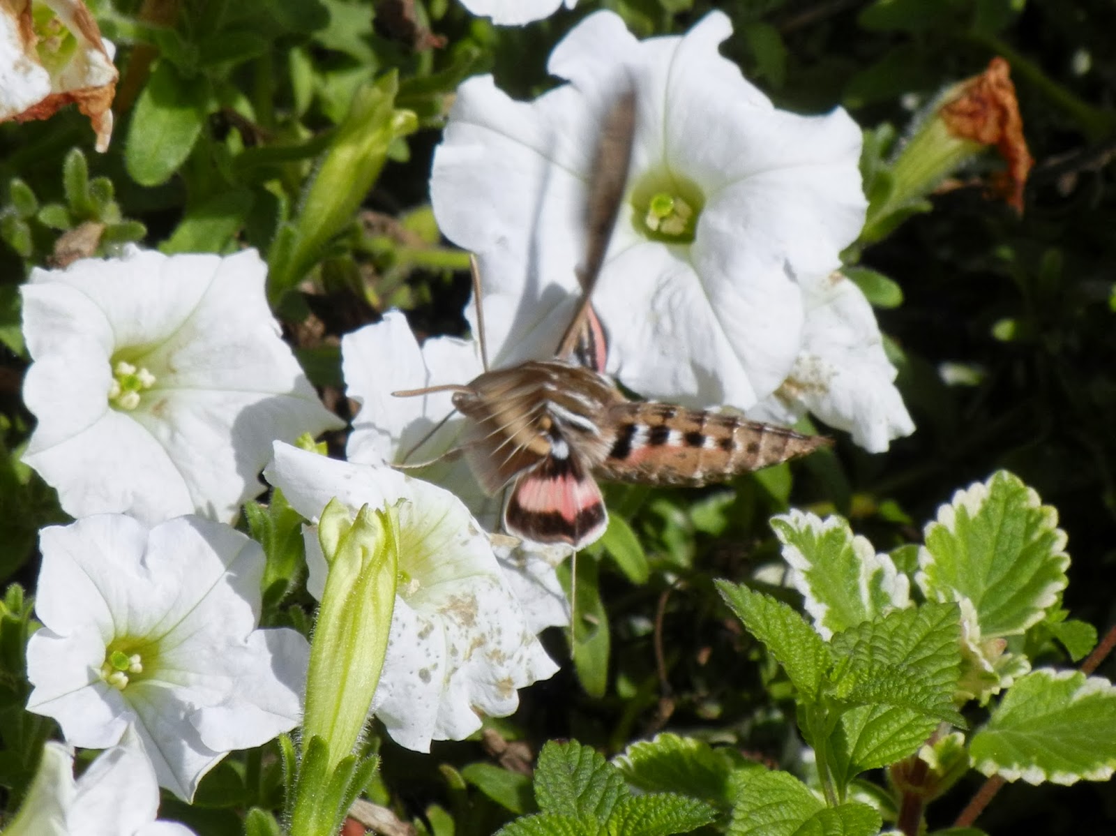 The caretaker of the formal garden (which was just barely past its peak) told us he had seen practically a swarm of hummingbird moths in the last few days. And that two were still hovering in that general direction, he told us, pointing. Sure enough, we found the huge moths. The size of a small hummingbird, they suck the nectar from the flowers with their long beaks – ok that’s not the right term – and their wings beat much slower. They are very cool.