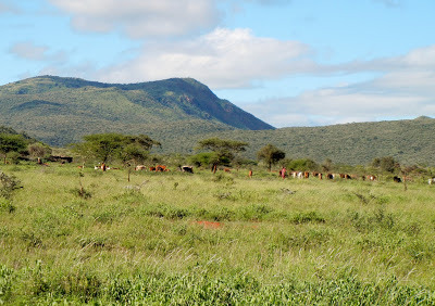 The animals in the distance are Maasai cattle. Our destination was that little peak in the far right corner.