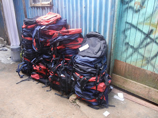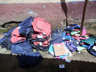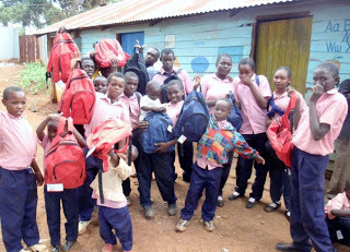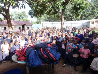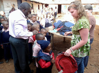 I really should back up once again. Have I even ever told you anything about the volunteer organization my daughter and I worked through while we were in Kenya? MarafikiCommunity was established around the time Val was there in 2010. Izzo, who runs the organization, initially started the group to help the people displaced by violence following the 2007 presidential election (more on that another day). From those simple beginnings, Izzo’s group has spread out in several directions, sending volunteers to schools, orphanages, hospitals and clinics as well as the IDP camps. A few days after we visited Maggie, Oliver and the children at Agape Hope Center, Val and I were given a daunting task. Izzo asked us to get together backpacks to give to the children at Agape. The storeroom next to Izzo’s house was filled with donated supplies and it was time to start giving them out. Val and I spent nearly two full days going through the storeroom and finding enough backpacks and pens, pencils, erasers, pencil sharpeners, rulers, and notebooks to fill those backpacks. Without nearly enough room to work and no good way to get out of the sun, we muddled through and got the job done.And then we had the immeasurable joy of giving out those backpacks.