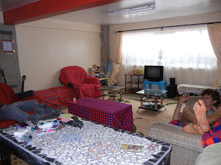I know that I told you a little about the volunteer house where we stayed in Kenya, but I thought I should fill you in on it a bit more. I don’t know the whole story of the house’s evolution, but I know that it has only been operational a few months. The ground floor consists of the main living space, which doubles as dining room, kitchen, TV room, and even a meeting room during the day.