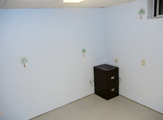 Well, Val's bedroom, of course. And where did the palm tree theme come from? In 2000, a year after Pat died, I started a Relay for Life team in her honor. Her initials spell PAL, so add an M for memorial and you have the PALM team. Over the years, I collected a few palm trees which we decorated our Relay for Life campsite with. What a better place for these PALMs to reside now.