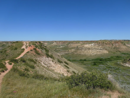 We were on vacation in the Dakotas for several days (Inever post when I am gone coz it feels like announcing to the world, “Come robme; I’m not home"). On our second day on the road, we drove through the southernloop of Theodore Roosevelt National Park. There were many places to pull overto take in the scenic views and even a few trails going off into thewilderness.