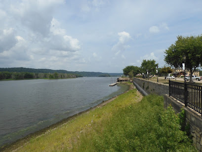 The Mississippi River flows across from the Depot and DousmanHouse.