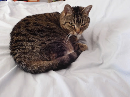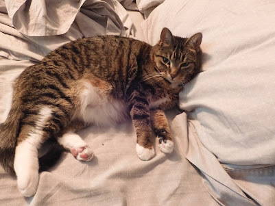 You know how some animals, especially dogs, will lay all stretched out on their bellies with all four legs stretched out. I always called that their froggy legs. But there is a word for it. Sploot or splooting.