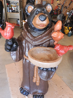He’d been starting to fade and show his age. And then last fall we didn’t get around to storing him in the garage over the winter. Whatever plaster he is made of does not apparently like the snow.