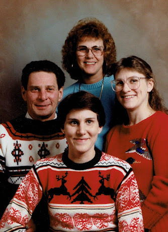 (The portrait was taken in 1991, as a Christmas present to our parents from my brother, both sisters, and me. Before ugly sweaters was a thing.)