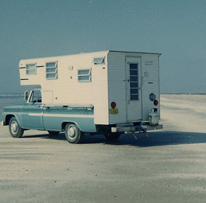 Nope, we never stayed in motels oreven resort cabins. We slept, ate, and played cribbage in Dad's pickup camper.Along with the faithful dog.