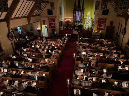 (The picture is from a Christmas Eve candlelightservice at my church. No flames above anyone’s head; just flames from our candles.)