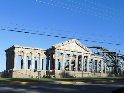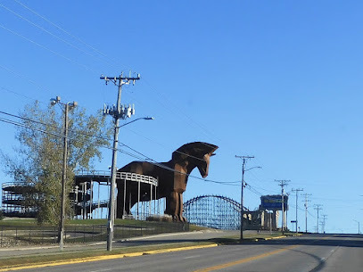 Pier County Park is on the west side of town and is the home of this large formation, a half-mile-long rock made of blocked and layered sandstone, rising above the valley near sixty feet.