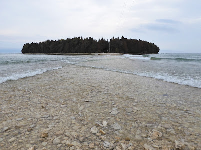 Across this isthmus, which has varying amounts of water in it at any time. But because it was Columbus Day, the tractor and wagon were not running. We could have walked across – as two brave women did – but the Lighthouse was closed for the holiday anyway, so it didn’t seem worth it.