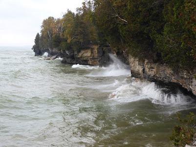 Last Friday I started telling you about the quick trip my friend and I took to Door County last October. Our first stop, Cave Point County Park, was so fascinating that I took 113 pictures and spent that entire blog on Friday just sharing some of those pictures.