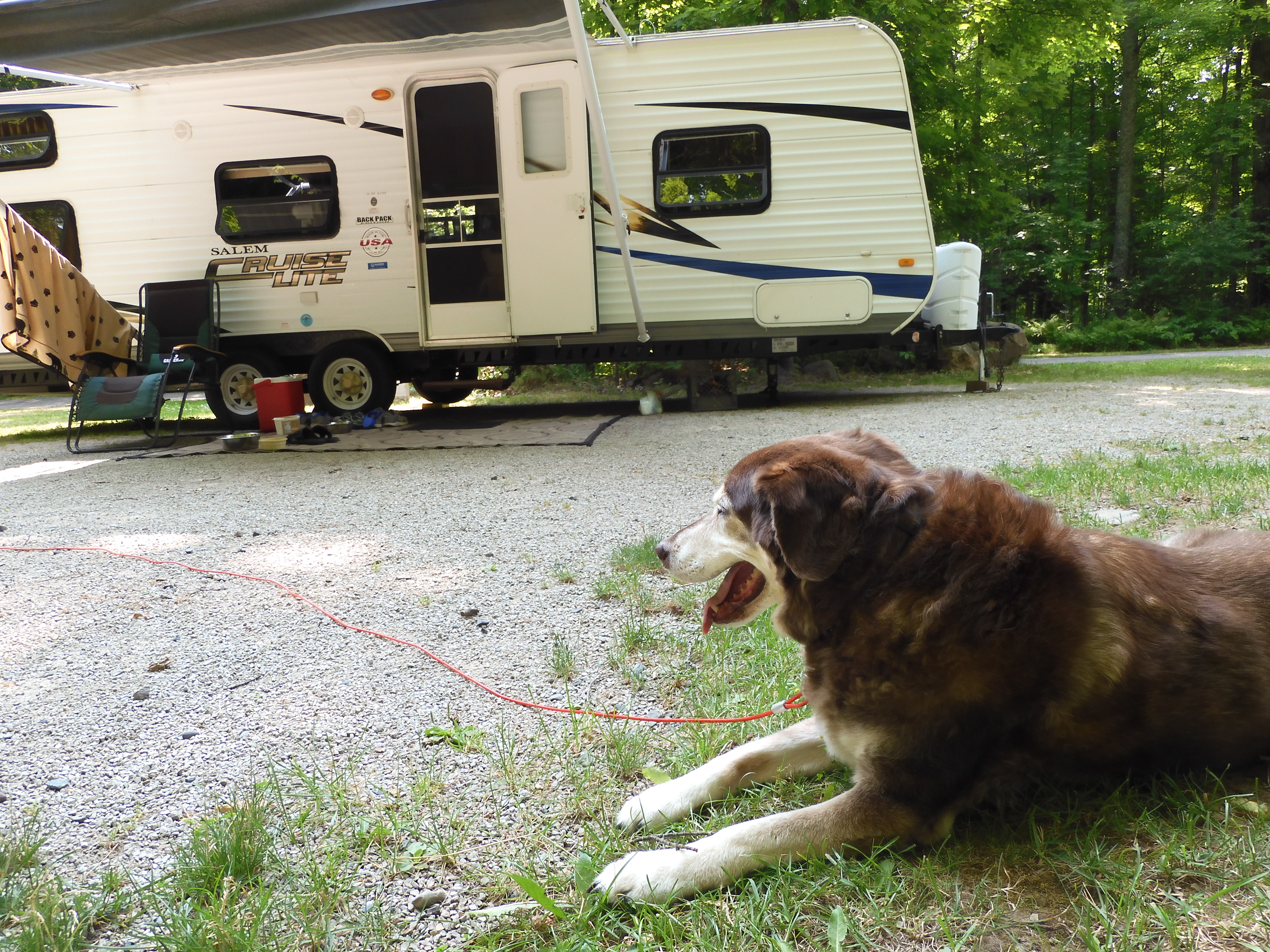 The morning of July 11, Hubby, Dino and I headed out on our first week-long trip in Carlton the camper. As mentioned in my previous blog post, things didn’t get off to a smooth start. The rodent infestation put all our preparations behind. But I have finally learned that vacations shouldn’t be planned around any particular schedule; that there shouldn’t be any set times for anything. I thought I had realized that on my first camping trip to Bewabic with my sister Pat way back in 1980. I’m glad I am finally coming back around to what it means to be on vacation.