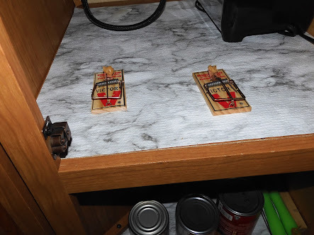 You may remember (or you can click this link to refresh your memory) that before we set off on our first camping trip in the new camper this spring, that I found a dead mouse while cleaning. It caused my gentle lick-and-a-promise cleaning to turn into a full-blown scrub to the rafters. After which, since no one else showed up in the mouse traps, I was confident in success.