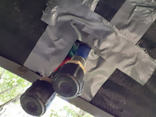 So, we gathered some steel wool, duct tape and electrician’s tape and I crawled under the darn camper, crammed steel wool into every hole and crack I could find, and then covered them with tape.