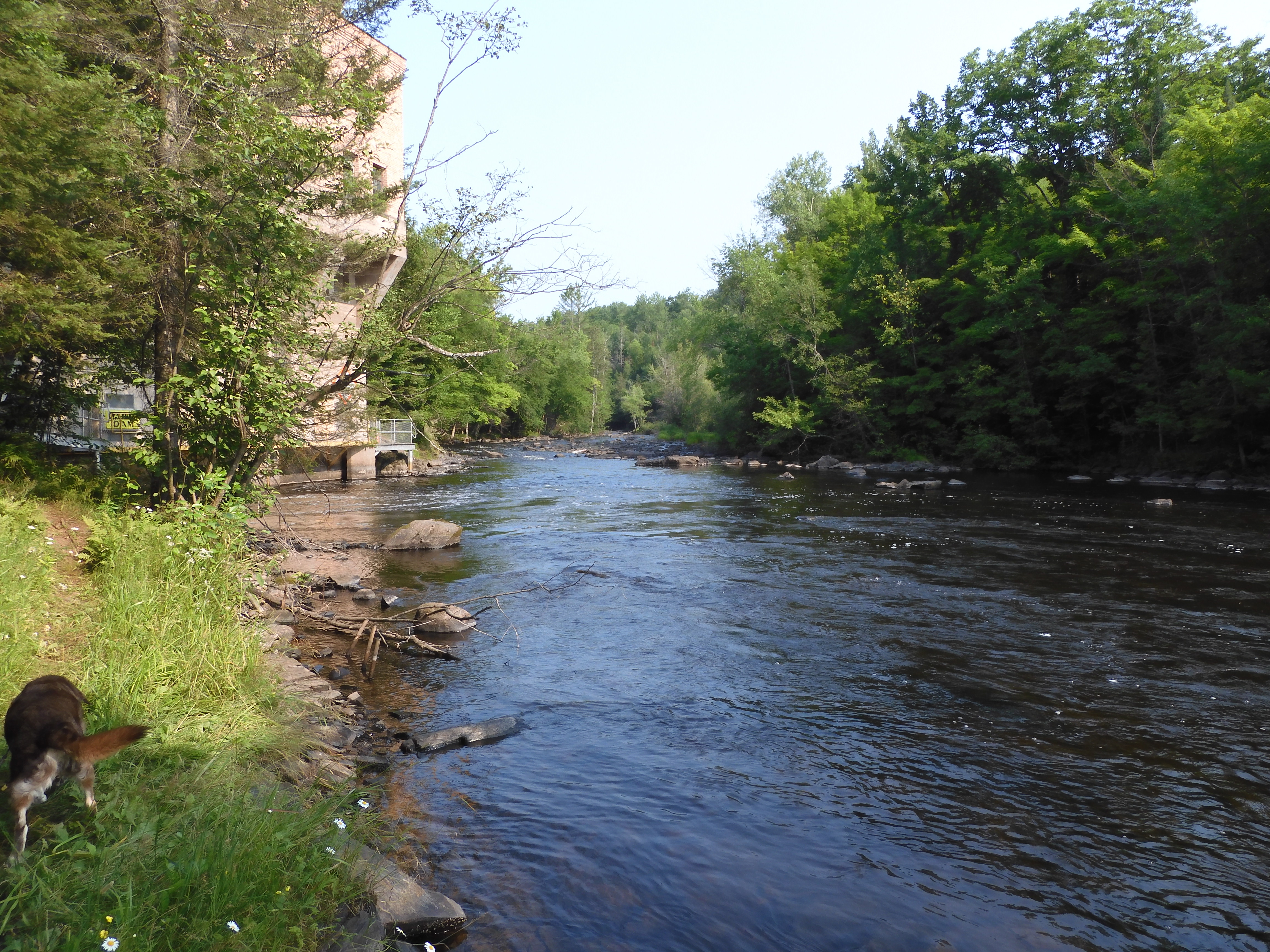 We drove to the WE Energies Powerhouse, and I followed the canoe portage signs down some stairs to the bottom of the dam. The sign I read said the trail came out at the top of the falls, which it clearly did not.