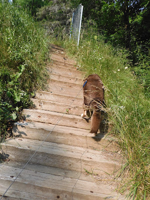 I backtracked, released the dog, and headed back up the service road. As we got almost to the powerhouse, here was Hubby ambling along, confident he was on the right path and not at all worried about me.
