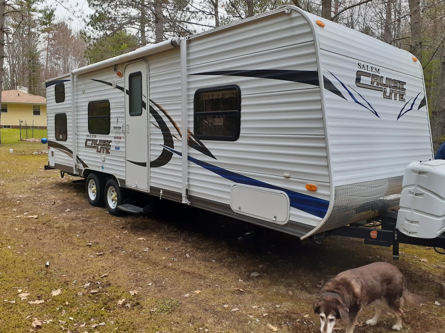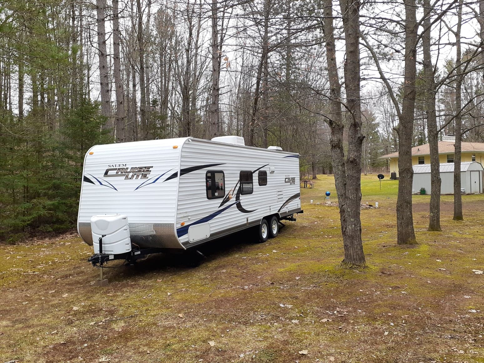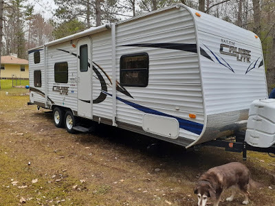 As you may already know, on Saturday, we brought Carlton the camper home. We had bought the used travel trailer the first of December but had left it in storage at the dealership until the snow melted and the yard was dry. I’ve spent the last four months planning a myriad of camping trips and picturing how to make all the new gadgets work. Our pop-up camper only had the basics, and we never even used the heater or the water in it.