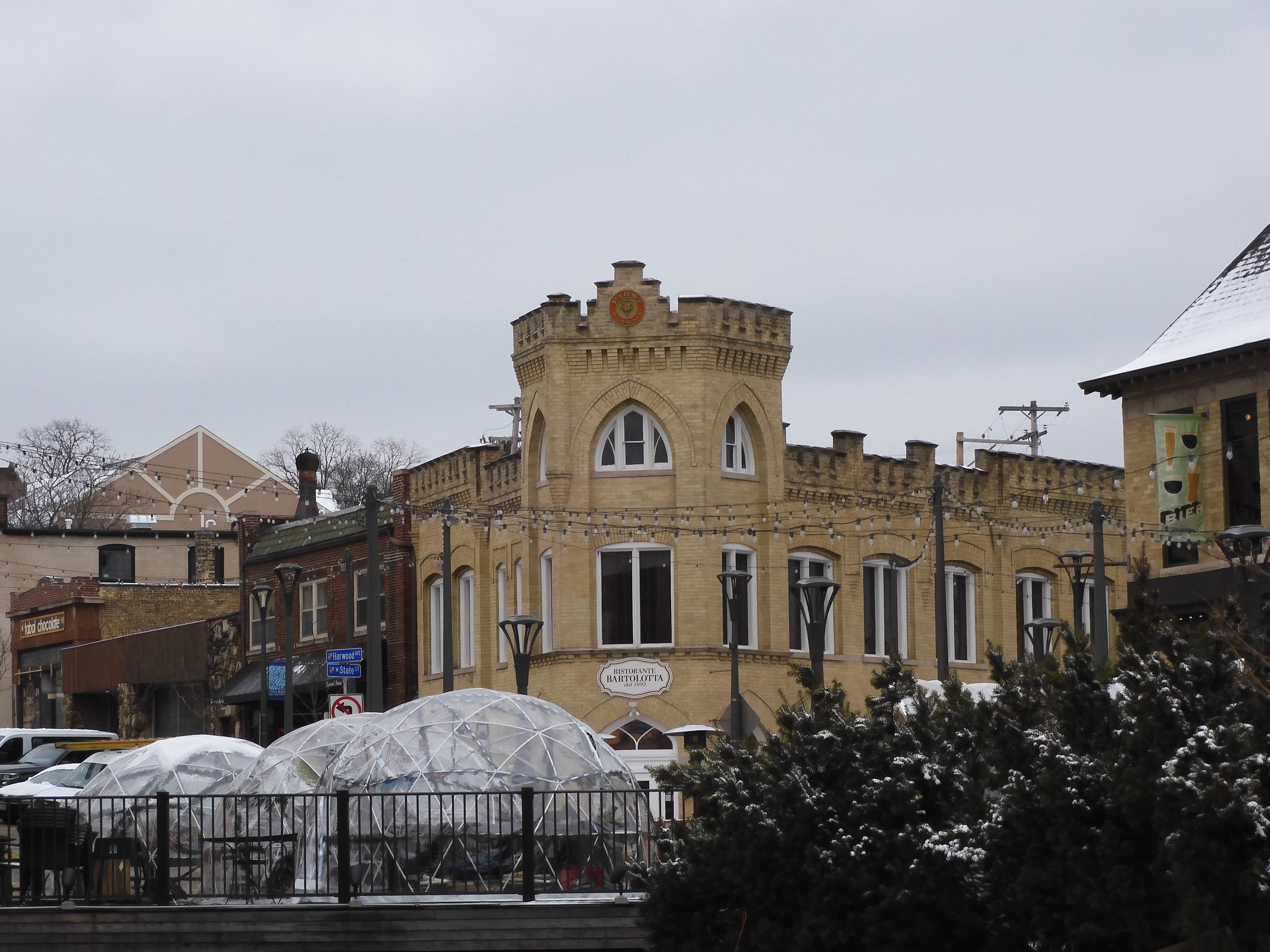 While he was in surgery at Froedtert’s in Milwaukee, his sister and I went out for breakfast at Café Hollander in Wauwautosa and then took in the neighborhood. Unfortunately, after an unseasonably warm month, it was freezing cold out that day, with a fresh layer of snow.