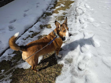 We’ve been walking Hannah on the leash around the yard on the trails throughthe snow that were already there. But now that the snow is melting, I’ve beentrying out the shock collar and walking her closer to where the boundary wouldbe.
