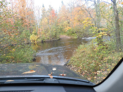 My son spun around his vehicle and headed to the end of the road, where it disappears into the Potato River to reemerge on the other side.