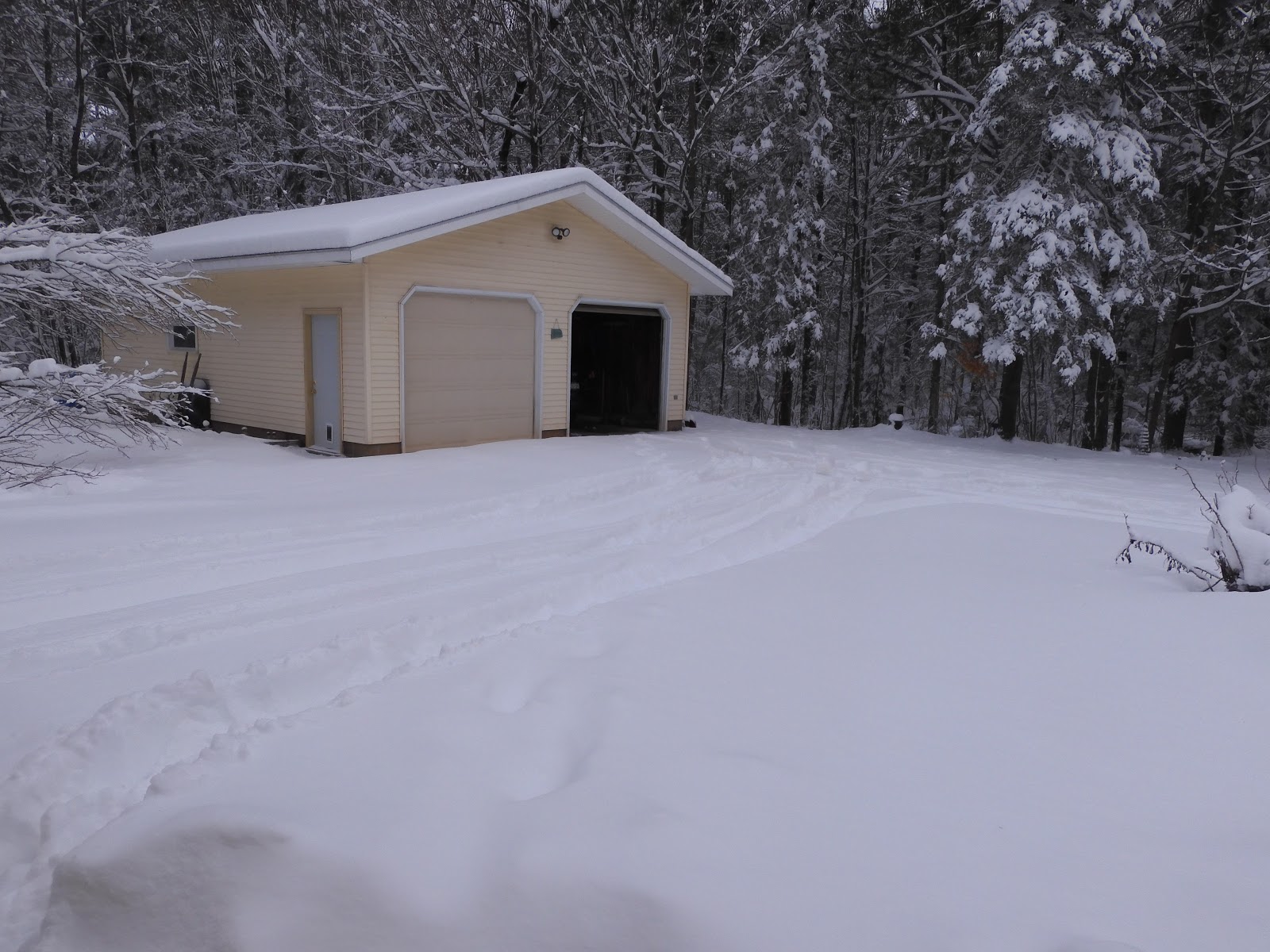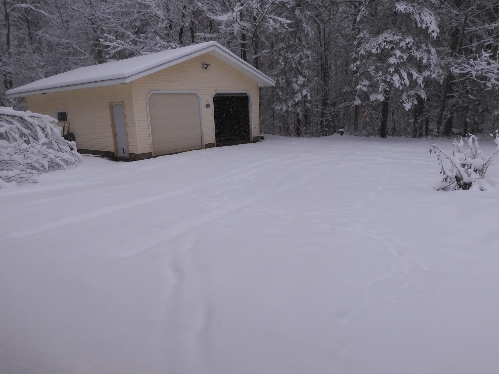 So here is the play by play view of our garage from this most recent snowstorm. Sunday, April 12, at 11:20 am, as the snow was just beginning.
