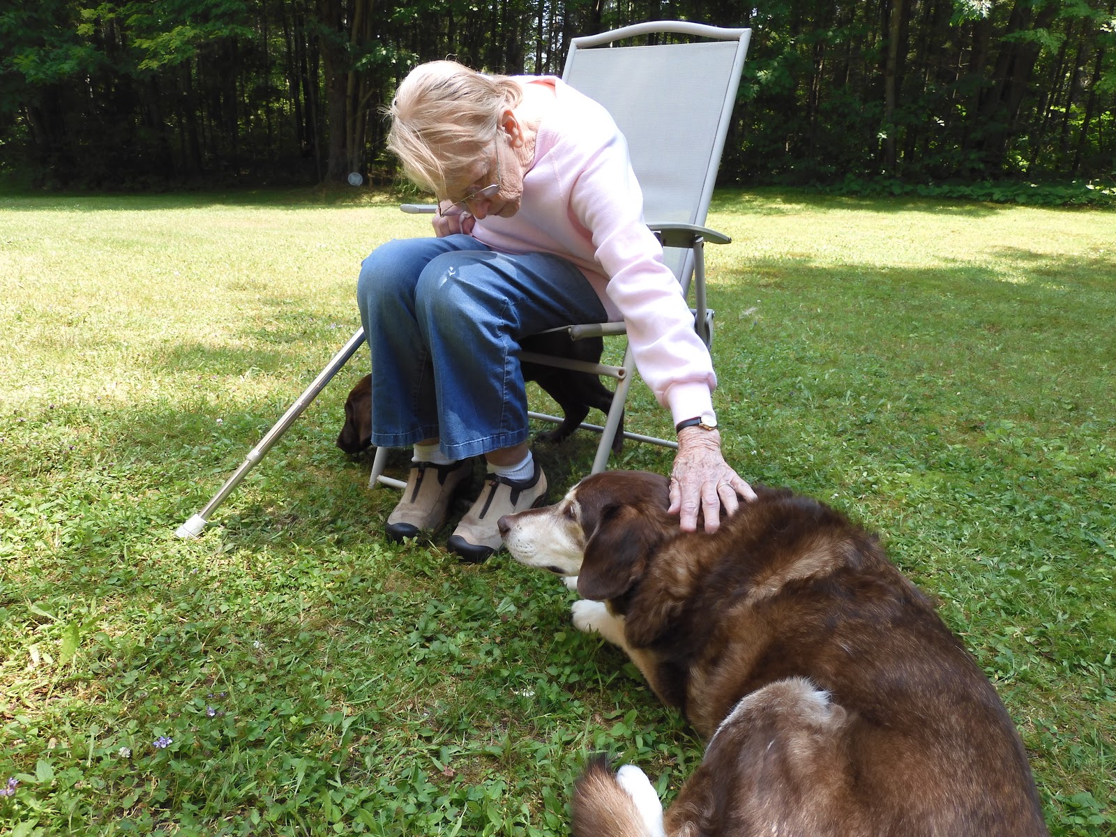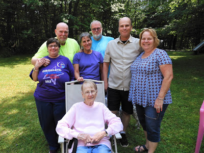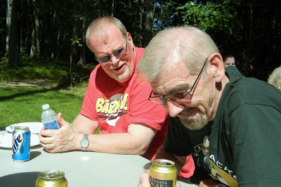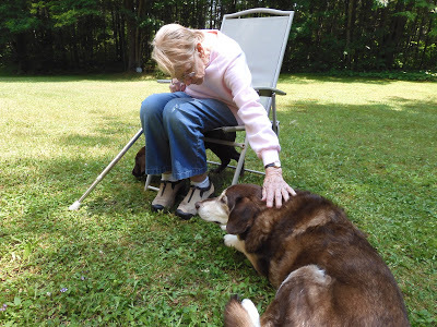 With my husband, at my brother's picnic in 2011On July 27, they drove up to our house, and Hubby and I took them for a ride around some lakes up north. Claude seemed pretty good, more quiet than usual and a little unsteady on his feet, even more thin than he had always been.