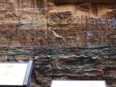 The second weekend in August we drove to Iowa to visit Hubby’s brother and sister-in-law. We would have made more stops along the way, but the skies were cloudy and rain looked imminent most of the drive down. This was a quick stop at the petroglyphs at Roche-A-Cri State Park.