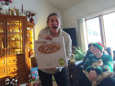 My daughter was happy with her pizza stoneware from the gift exchange.