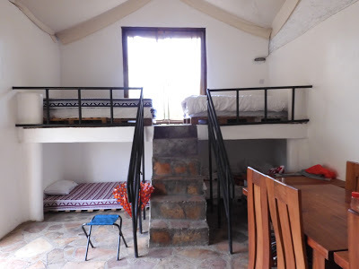 The configuration is that each building will have three units in it – two larger rooms for families or groups and a smaller upper unit for couples.