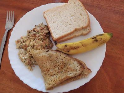 Our breakfast one morning. Nothing fancy, but tasted great and filled us up.