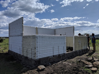This trip, however, we were greeted with a young Kenyan woman carrying a tray of glasses of fresh pineapple juice for everyone. As well as three nearly completed bungalows.