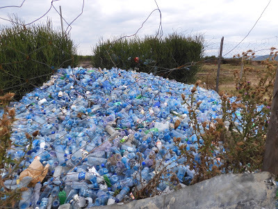 Save enough water bottles, fill them with sand, stack them, and they become walls for your building.