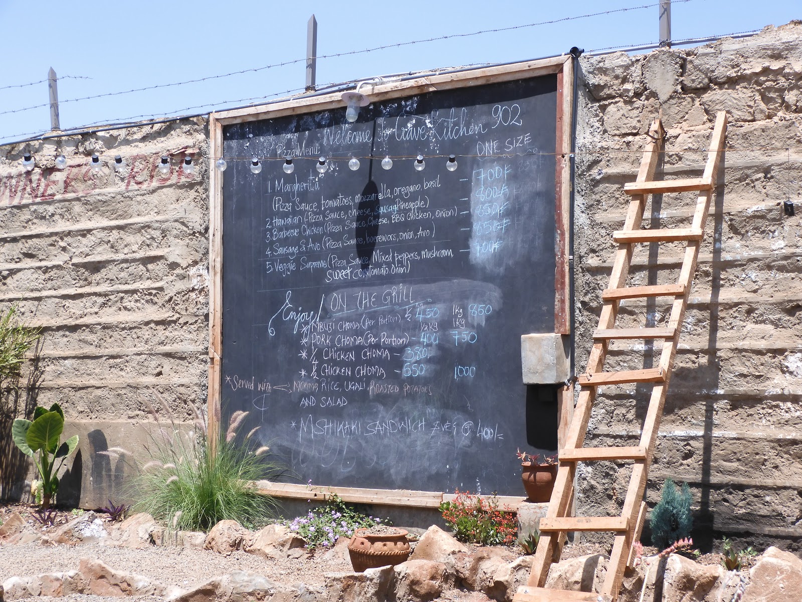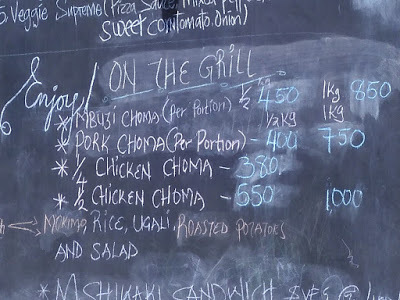 Let me zoom in to show you some of the menu. Choma is roasted meat and 1,000 KSH equals about $10.