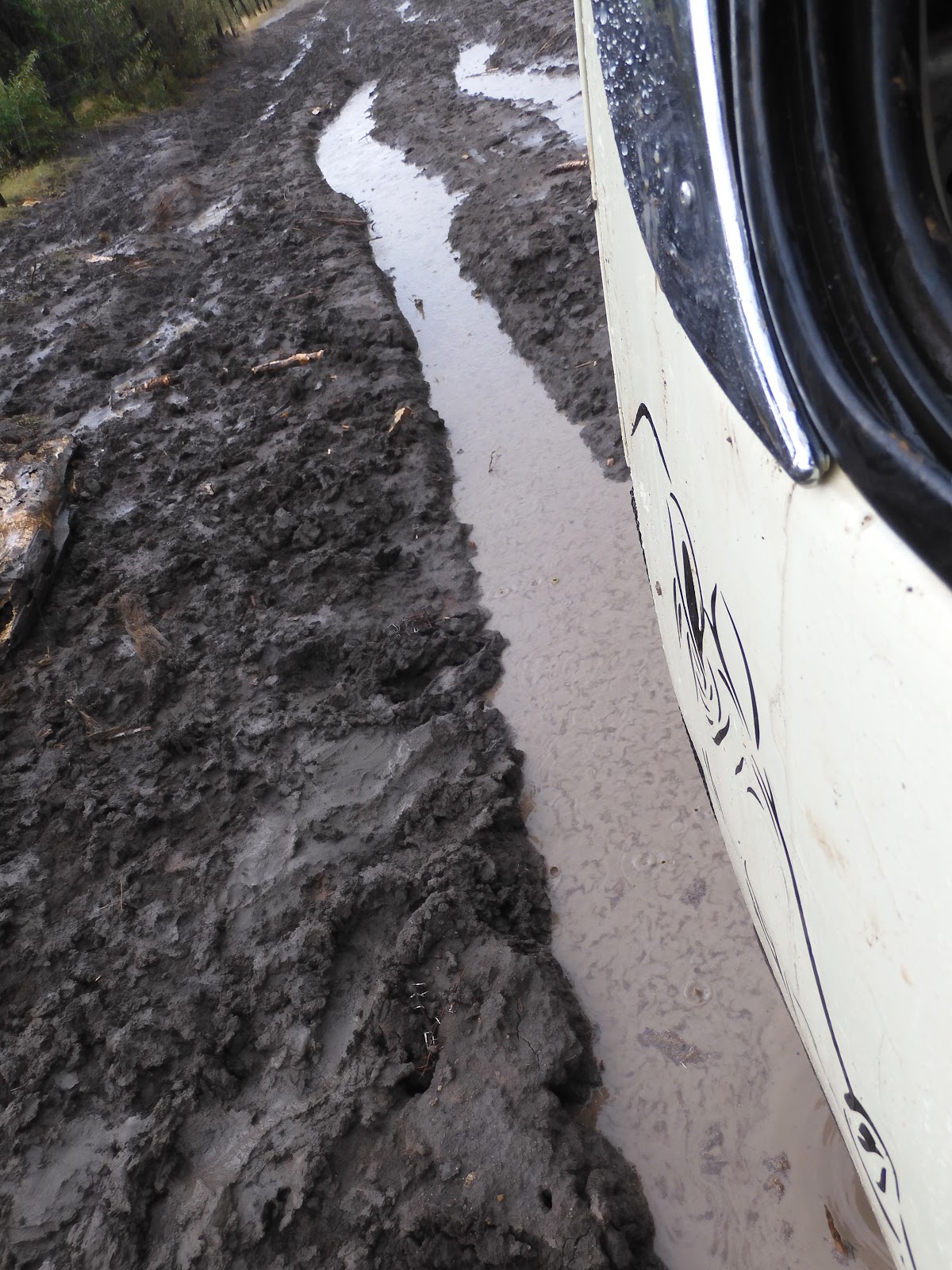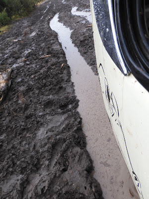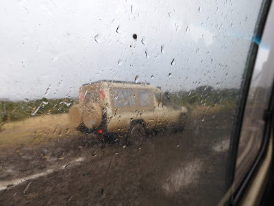 As we were leaving the school, we could see the rain clouds gathering in the west. Only a few minutes later, it started raining, and 15 minutes later we got stuck for the first time. We barely got unstuck, when the van got stuck again.