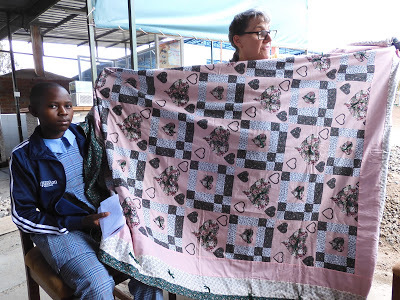 Here’s where the talent shines – the quilt my church’s ladies aid donated to Mueni’s family.