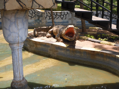So this is the statue at the entrance of the park. See the blood dripping off the cat's fangs? Is that kid-friendly or not?